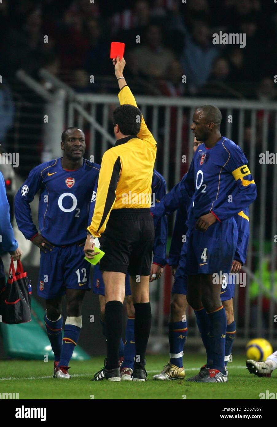 Arsenals Lauren L Wird Gegen Psv Eindhoven Geschickt Schiedsrichter Herbert Fandel Stockfotografie Alamy